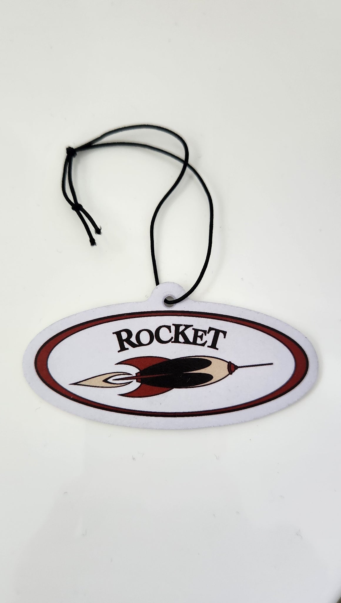 Our Rocket car air freshener is available in two scents, printed both sides , 8cm x 4cm.